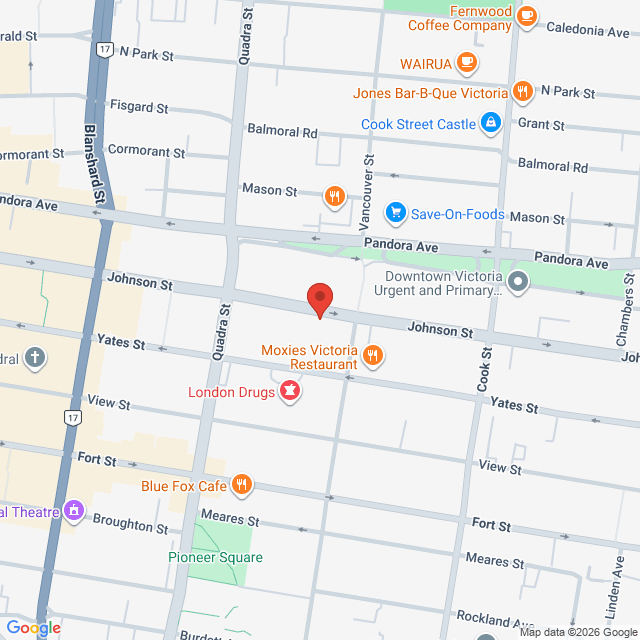 Conveniently located at the corner of Johnson & Vancouver. The treatment room is located on the right-hand side of the 989 apartment building entrance.